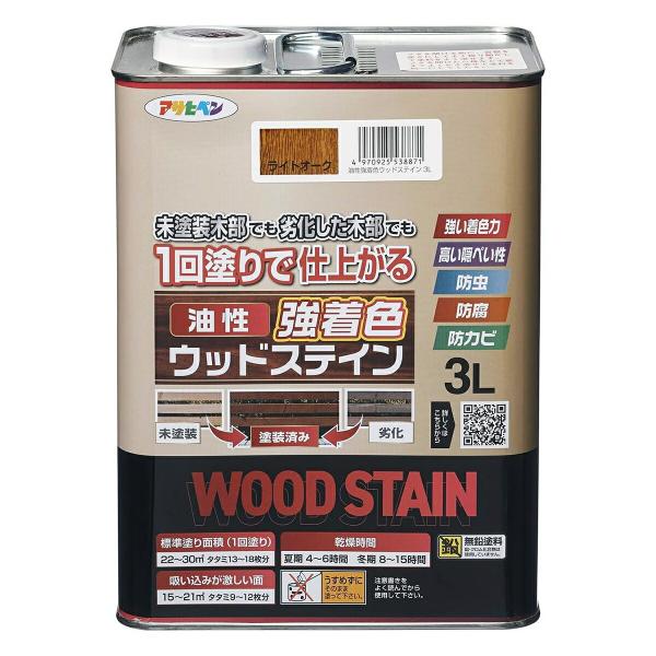 塗料 油性強着色ウッドステイン 3L ライトオーク アサヒペン ペンキ 油性 油性塗料 防腐剤 木材 ウッドデッキ 塗料 油性ペンキ 防虫 防カビ