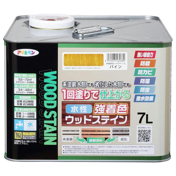 塗料 水性強着色ウッドステイン 7L パイン アサヒペン 水性塗料 ペンキ 水性 水性ペンキ 防腐剤 木材 ウッドデッキ 塗料 防カビ 防虫 撥水 防藻