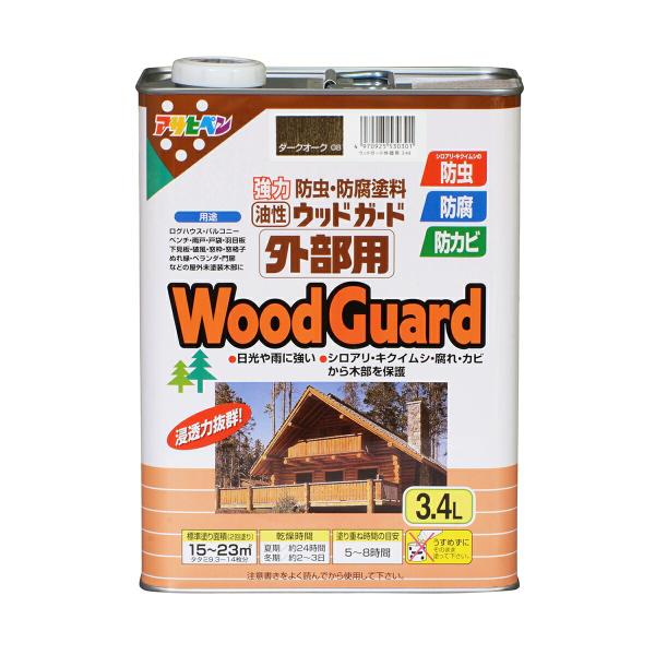 塗料 油性ウッドガード 外部用 3.4L ダークオーク アサヒペン ペンキ 油性 外壁塗料 ウッドデッキ 塗料 外壁塗装 外壁 外壁用ペンキ 防腐剤 木材 防虫