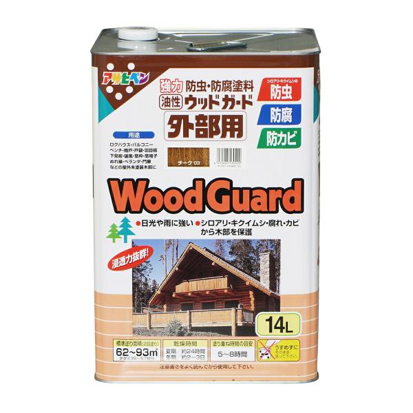 塗料 油性ウッドガード 外部用 14L チーク アサヒペン ペンキ 油性 外壁塗料 ウッドデッキ 塗料 外壁塗装 外壁 外壁用ペンキ 防腐剤 木材 防虫