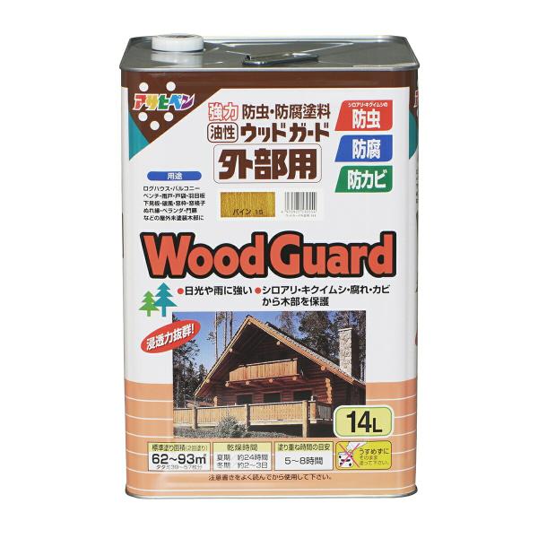 塗料 油性ウッドガード 外部用 14L パイン アサヒペン ペンキ 油性 外壁塗料 ウッドデッキ 塗料 外壁塗装 外壁 外壁用ペンキ 防腐剤 木材 防虫