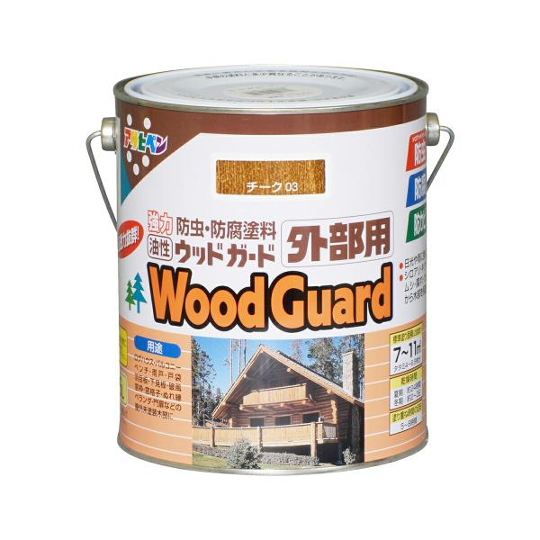 塗料 油性ウッドガード 外部用 1.6L チーク アサヒペン ペンキ 油性 外壁塗料 ウッドデッキ 塗料 外壁塗装 外壁 外壁用ペンキ 防腐剤 木材 防虫 塗装