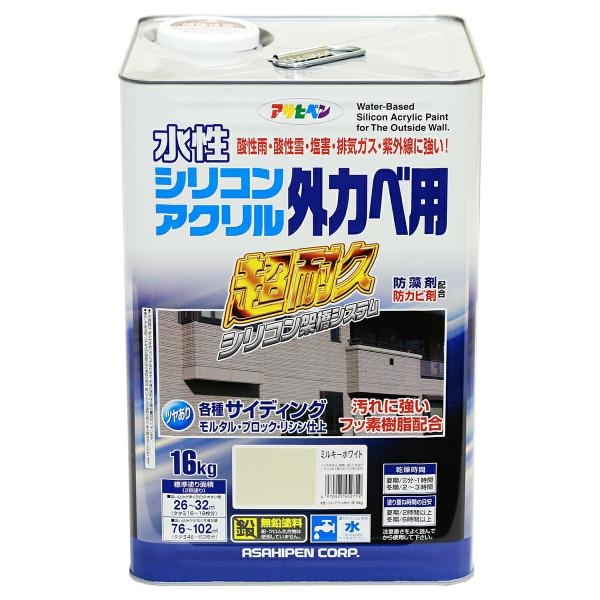 塗料 水性シリコンアクリル外カベ用 16kg ミルキーホワイト アサヒペン 水性塗料 ペンキ 水性 水性ペンキ 外壁塗料 超耐久 防かび 防藻 汚れに強い サイディング