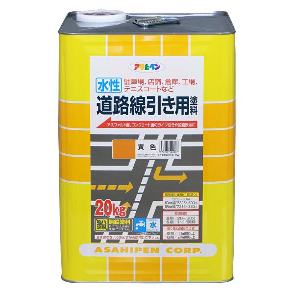 塗料 水性道路線引き用塗料 20kg 黄色 アサヒペン 水性塗料 ペンキ 水性 水性ペンキ 道路線引き用塗料 アスファルト コンクリート 駐車場 倉庫 ライン引き
