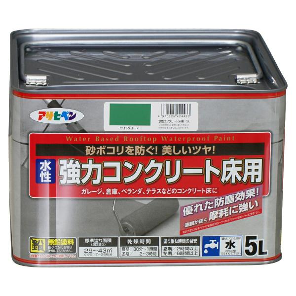 塗料 水性強力コンクリート床用 5L ライトグリーン アサヒペン 水性塗料 ペンキ 水性 水性ペンキ 簡易防水 塗料 アスファルト コンクリート 塗料 砂ぼこり