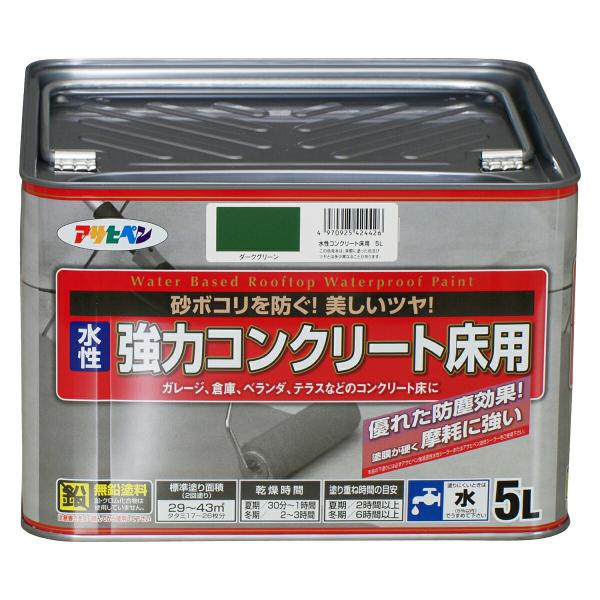 塗料 水性強力コンクリート床用 5L ダークグリーン アサヒペン 水性塗料 ペンキ 水性 水性ペンキ 簡易防水 塗料 アスファルト コンクリート 塗料 砂ぼこり