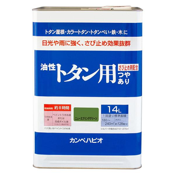 塗料 油性トタン用 14L ニュースプリンググリーン カンペハピオ ペンキ 油性 屋根 油性塗料 屋根塗料 錆止め塗料 錆止め トタン屋根用塗料 防さび