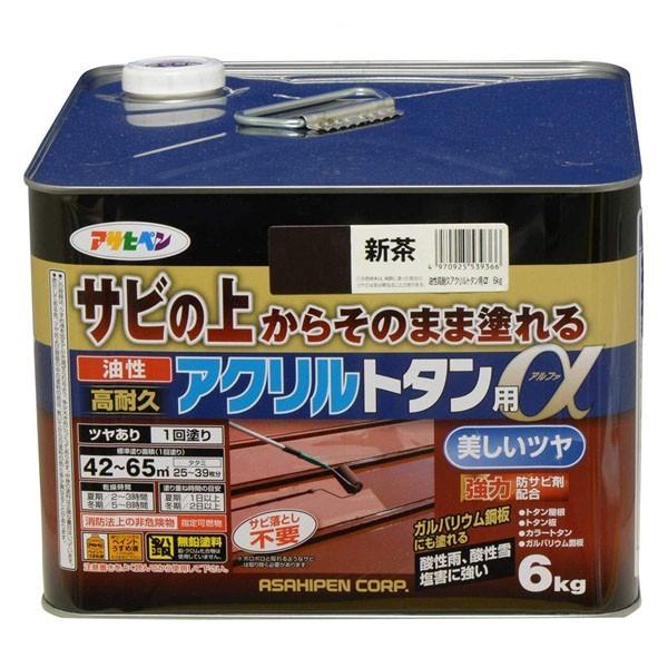 塗料 油性高耐久アクリルトタン用α 6kg 新茶 アサヒペン ペンキ 油性 油性塗料 屋根塗料 錆止め塗料 トタン屋根用塗料 錆の上から塗れる塗料