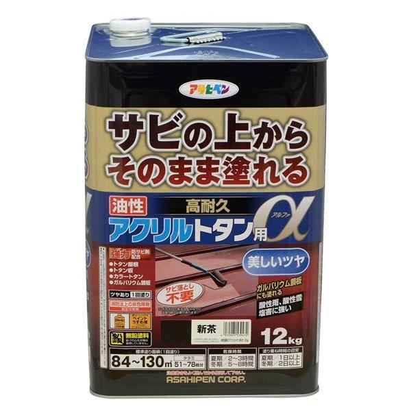 塗料 油性高耐久アクリルトタン用α 12kg 新茶 アサヒペン ペンキ 油性 油性塗料 屋根塗料 錆止め塗料 トタン屋根用塗料 錆の上から塗れる塗料