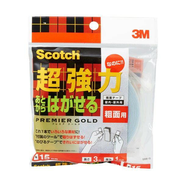 両面テープ スコッチ 超強力なのにあとからはがせる両面テープ プレミアゴールド 粗面用 幅15mm×長さ3m×厚み1mm SRR-15 3M 両面テープ 超強力 M4