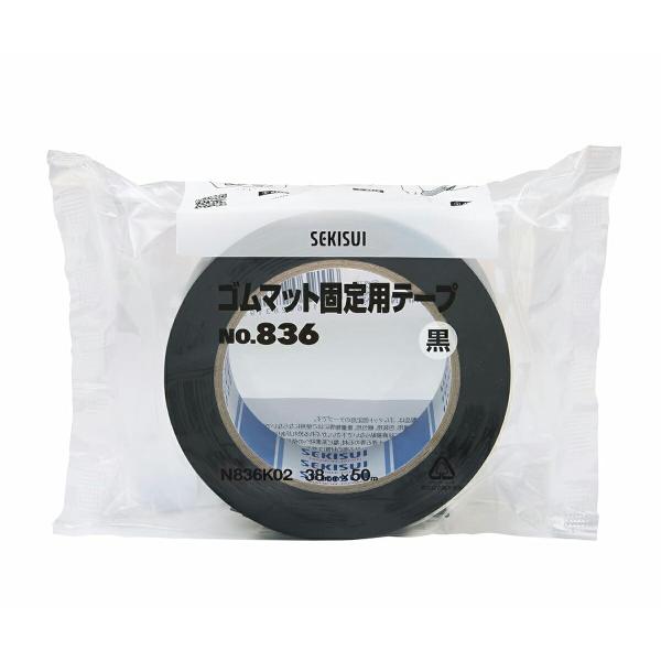 OPPテープ ゴムマット固定用テープ No.836 黒 幅38mm×長さ50m セキスイ OPP テープ 粘着テープ ゴムマット 固定 ズレ防止 はがしやすい 接着