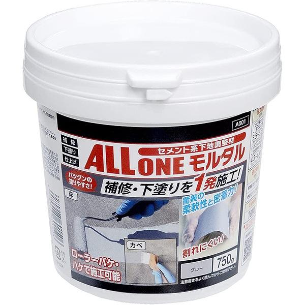 コンクリート補修材 セメント系下地調整材 オールワンモルタル グレー 750g ×12缶 A001 アサヒペン コンクリート 補修 ひび割れ セメント コンクリート補修