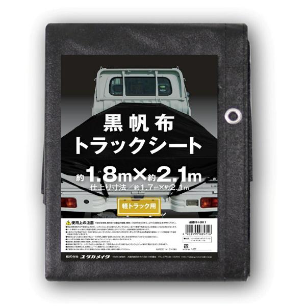 軽トラ 荷台シート 黒帆布 トラックシート 軽トラック用 約1.8m×2.1m H-BK1 ユタカメイク 軽トラック 荷台シート 防水シート ゴムロープ付属