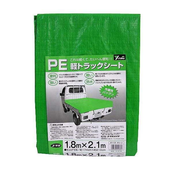 軽トラ 荷台シート PE軽トラックシート グリーン 1.8m×2.1m B-112 ユタカメイク トラックシート 軽トラック 荷台シート 防水シート ゴムロープ付