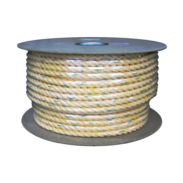 ●安価で強力なポリエチレン(PE)の特性を生かし作業性をアップさせる為にポリエステル糸(白い糸)を混ぜて作られたロープです
