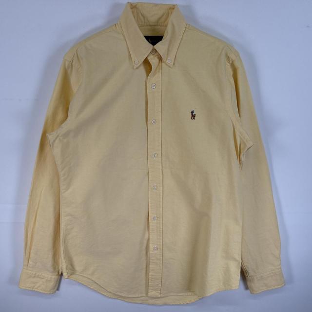 古着 ラルフローレン RALPH LAUREN 長袖シャツ ワンポイント ロゴ 刺繍 ボタンダウンシャツ S イエロー 無地 メンズ