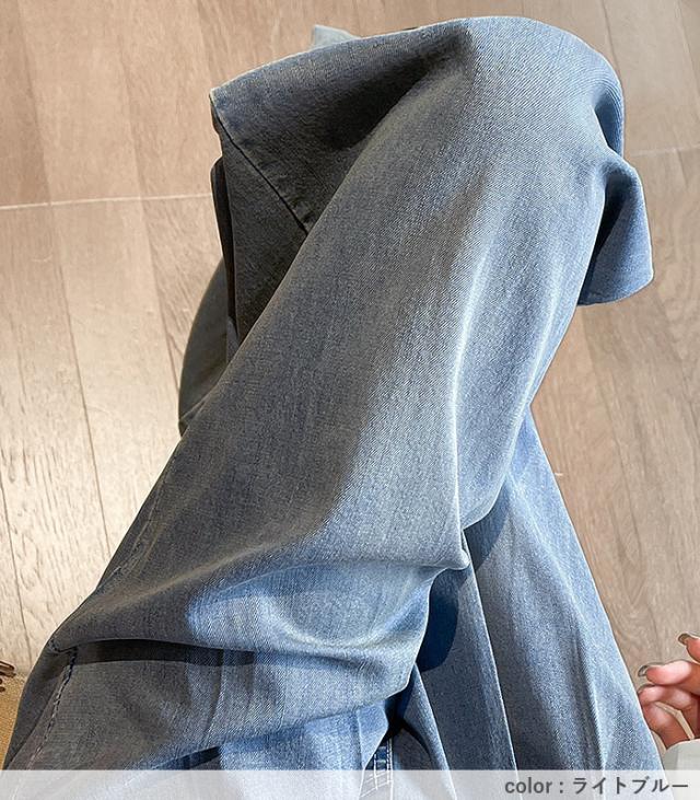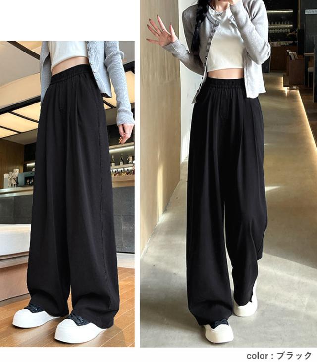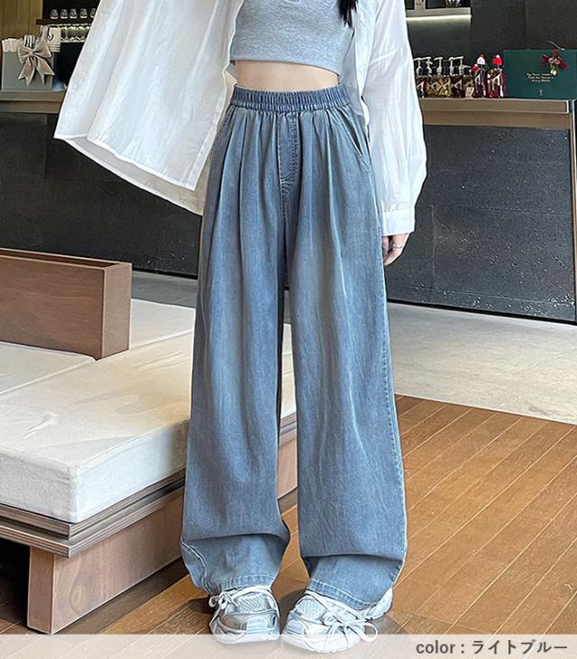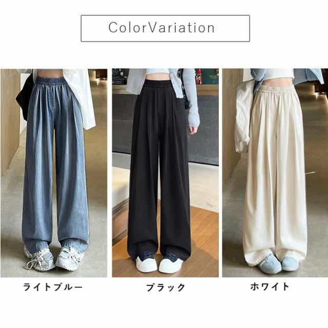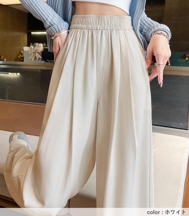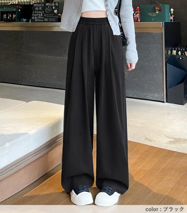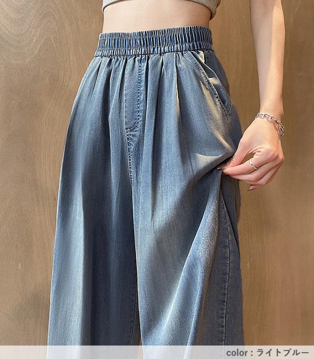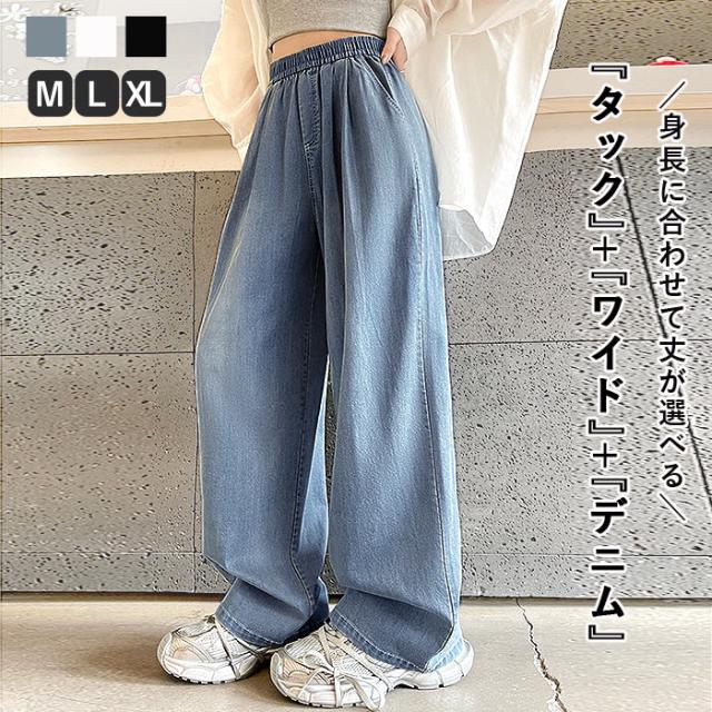 春新作 ボトムス レディース ワイドパンツ タック入 春 夏 白 黒 おしゃれ ウエストゴム ポケット付 デニムパンツ ゆったり 大きいサイズ[郵3]^b496^ ★