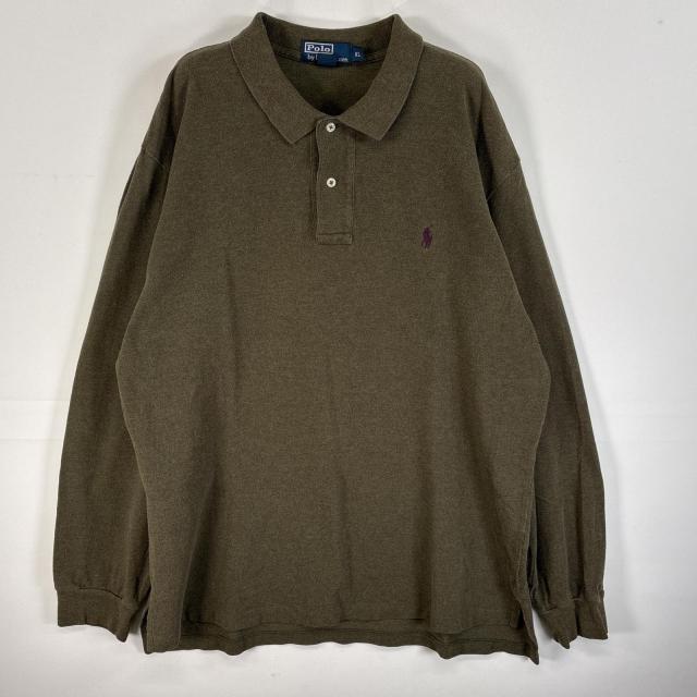 古着 90s/90年代 ポロバイラルフローレン Polo by Ralph Lauren 長袖 ポロシャツ ロゴ 刺繍 大きいサイズ 2ボタン XL カーキ 無地 メンズ