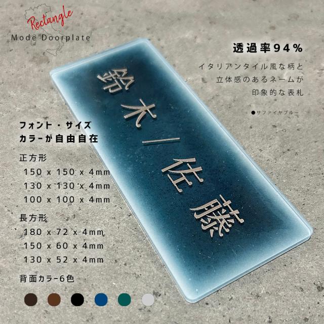 | 表札のサイズ(3種類) | 【正方形】 ・w100 x h100 x d4 ・w130 x h130 x d4 ・w150 x h150 x d4 【長方形】 ・w130 x h52 x d4 ・w150 x h60 x d4 ・w180 x h72 x d4 |