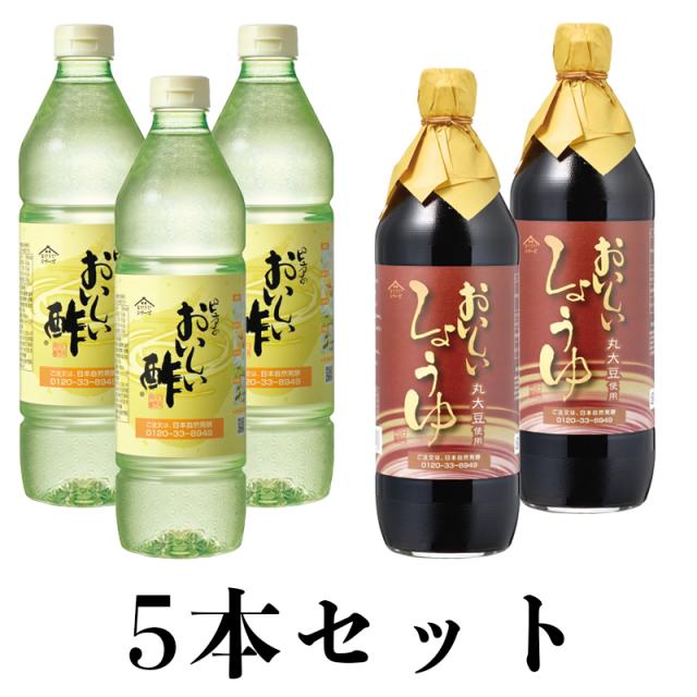 おいしい酢 955ml×3本 おいしいしょうゆ 900ml×2本 日本自然発酵 計5本 しょうゆAセット 酢 しょうゆ 調味料 送料無料 冬とくキャンペーン