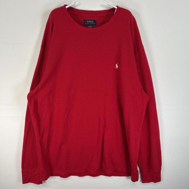 古着 ポロ・ラルフローレン POLO RALPH LAUREN 長袖Tシャツ ロゴ 刺繍 サーマル ワッフル 2XL レッド 無地 メンズ