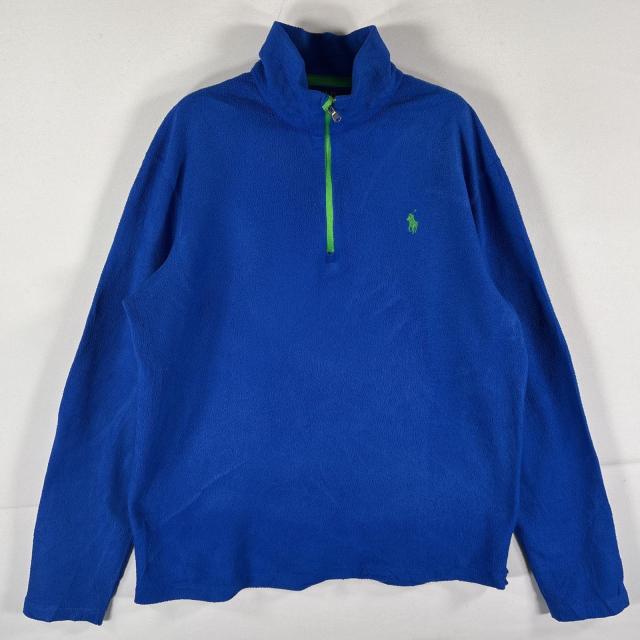 古着 ポロ・ラルフローレン POLO RALPH LAUREN フリーストレーナー ハーフジップ ワンポイントロゴ刺繍 M ブルー メンズ