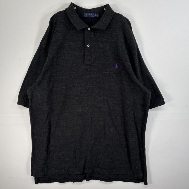 古着 ポロ・ラルフローレン POLO RALPH LAUREN 鹿の子 半袖 ポロシャツ ロゴ 刺繍 2ボタン 大きいサイズ 2XLT ブラック 無地 メンズ
