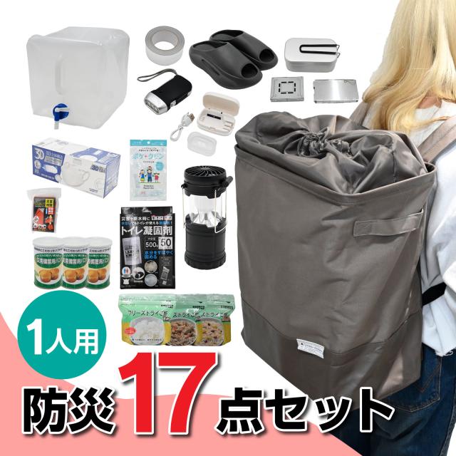 防災セット 一人用 総合型 長期避難対応 食品 調理 衛生 トイレ 防寒 ランタン付き ウォータータンク メスティン サンダル入り