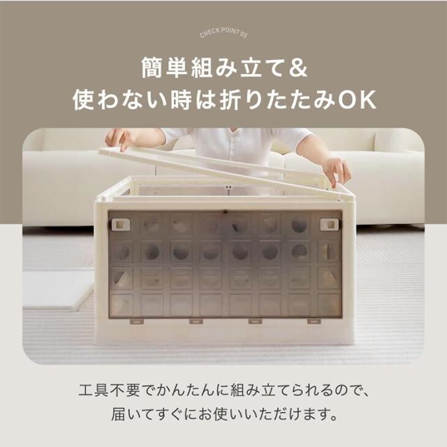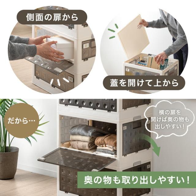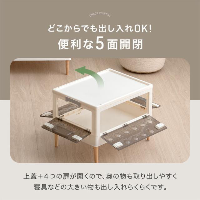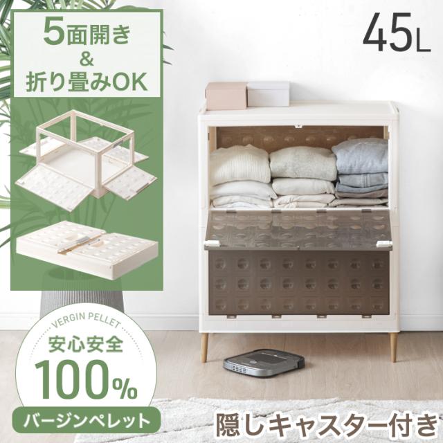 収納ケース プラスチック 5面開き 大容量 折りたたみ 収納ボックス 積み重ね 木脚 キャスター 前開き 5面開閉 半透明 中が見えない 押し入れ クローゼット 2段 45L