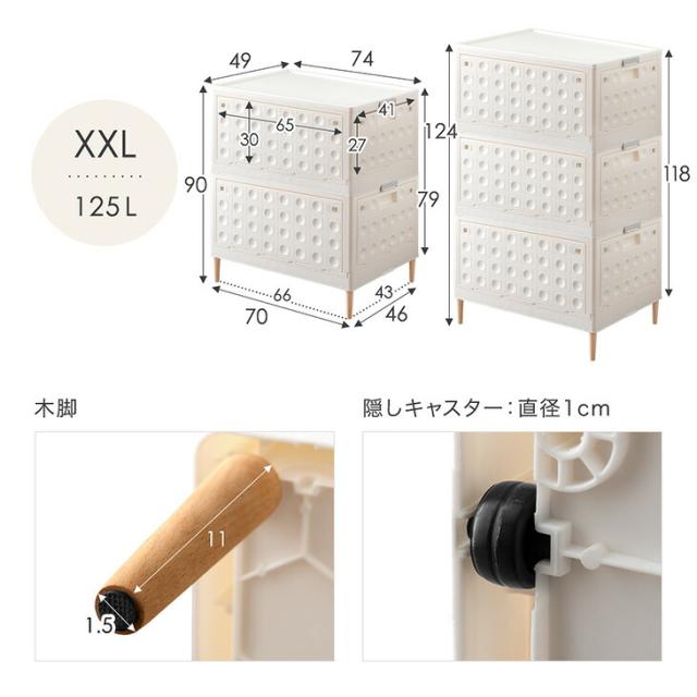 5面開き 収納ボックス 2段 45L お掃除ロボ対応 天然木脚 & キャスター付き 折りたたみ 収納ケース 積み重ね 大容量 収納 ケース 収納コンテナ 押入れ収納 ふた付き 衣類 布団 衣装ケース チェスト おしゃれ