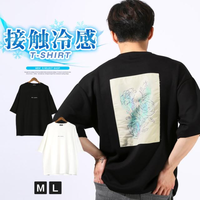 Tシャツ 半袖 トップス カットソー メンズ 接触冷感 クール バックプリント【フラワープリントバック貼り付けポンチTシャツ】 aa-3545
