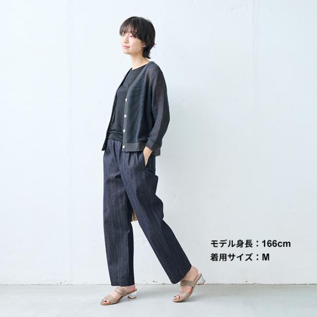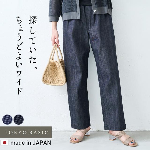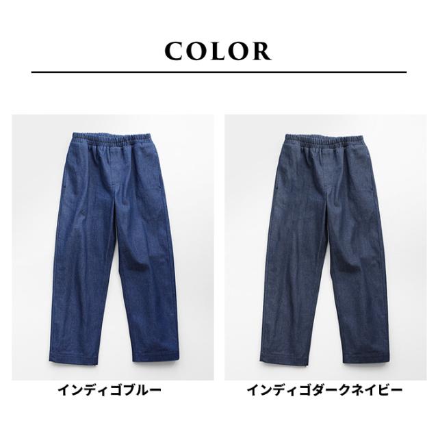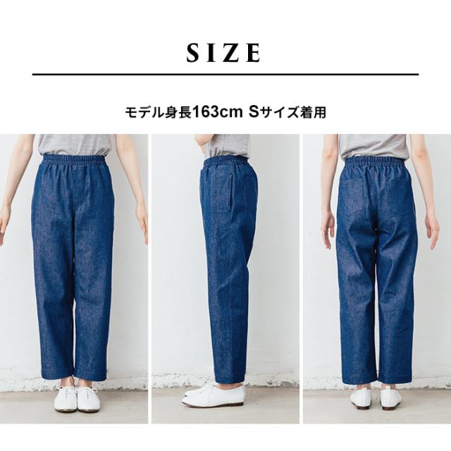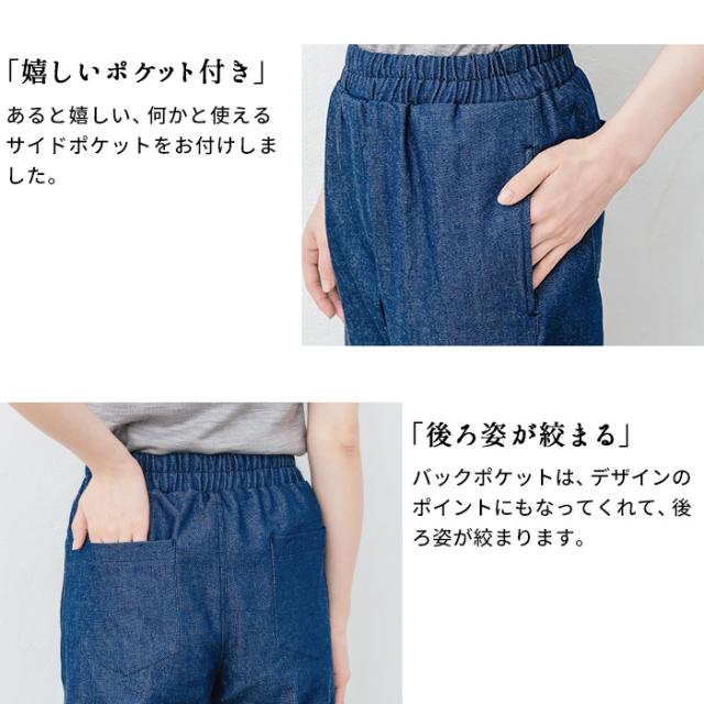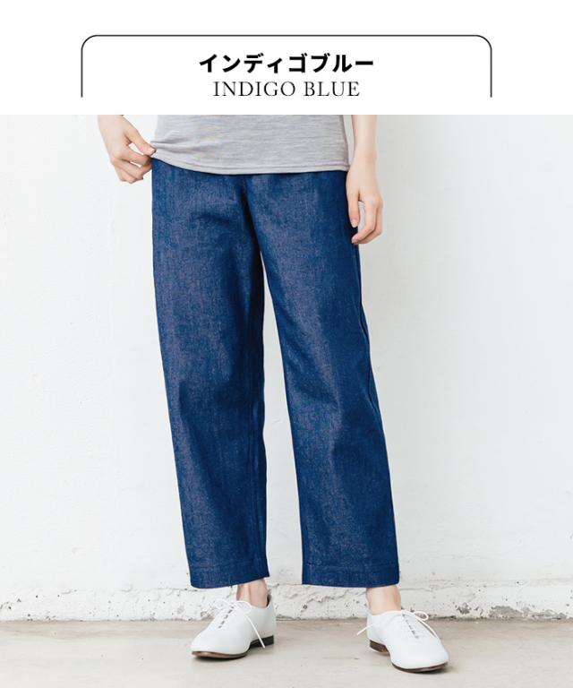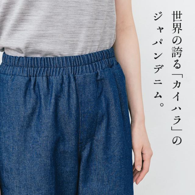 コットン100% ジャパンデニム セミワイドパンツ カーブパンツ 日本製 / デニムパンツ レディース ワイド ウエストゴム 40代 50代 60代 女性 ファッション ジーンズ ジーパン ストレートパンツ ワイドパンツ 綿100% ゆったり 大きめ カイハラ カイハラデニム
