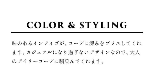 ※インディゴは素材の特性上、染料が色落ちすることがありますので他のものと一緒に洗わないでください。また汗や雨などでぬれた状態、及び摩擦によって色落ちし他の衣類などに色移りする事がありますのでご注意ください。色落ちはインディゴ染めの良さとして変化をお楽しみ頂ければと思います。