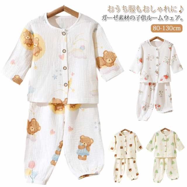 キッズ 春 ガーゼ パジャマ ベビー ルームウェア 長ズボン 長袖 ガーゼパジャマ コットン 子ども 送料無料 ロングパンツ 子供服 男の子 女の子 部屋着 ゆったり 前開き 吸水速乾 通気性 総柄 かわいい 送料無料 夏 秋 80 90 100 110 120