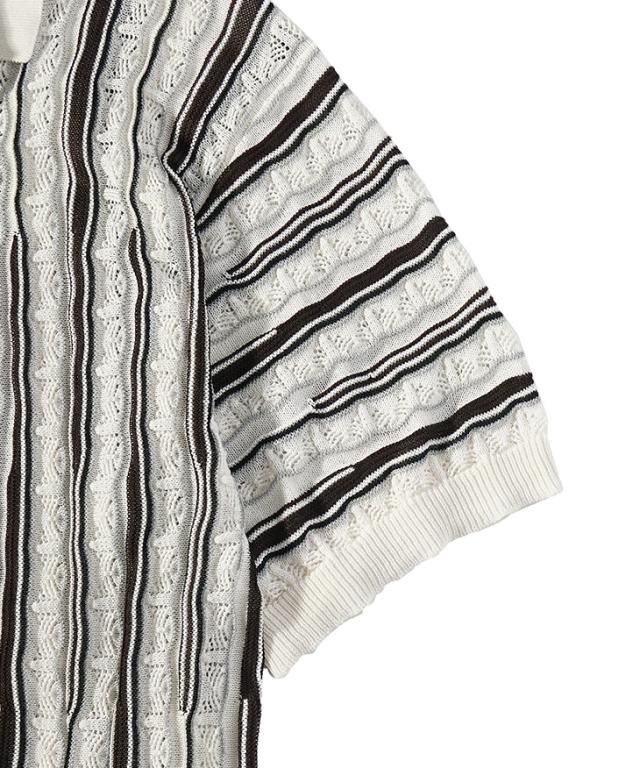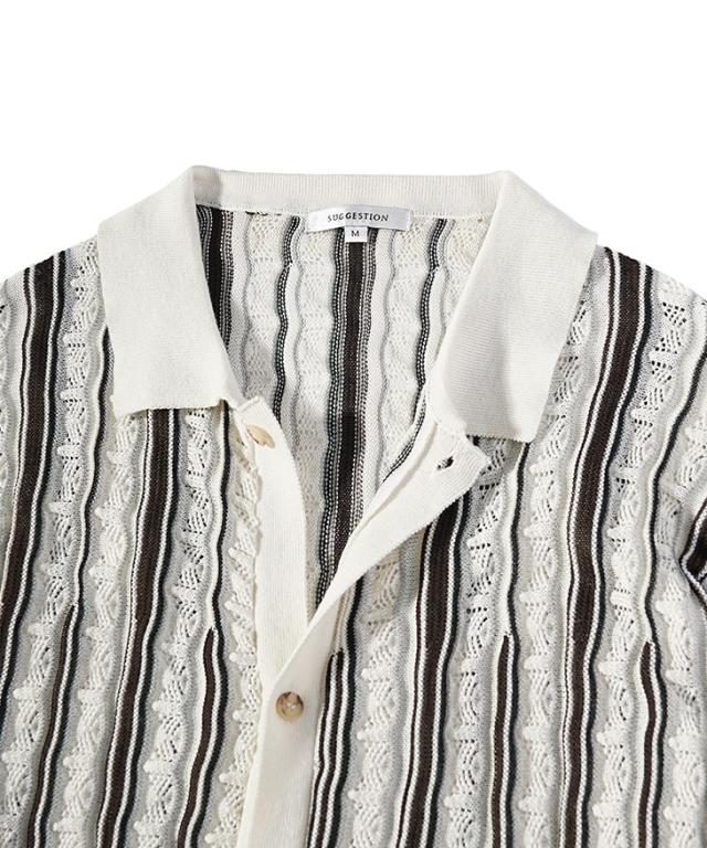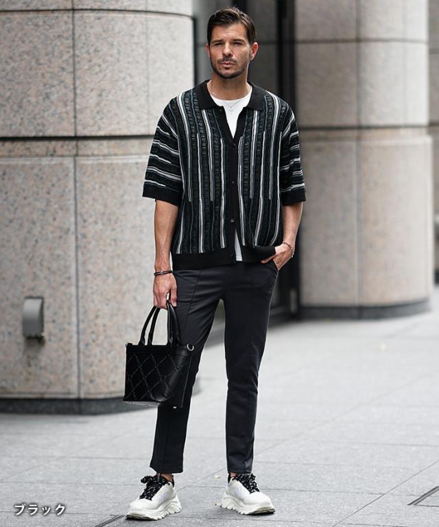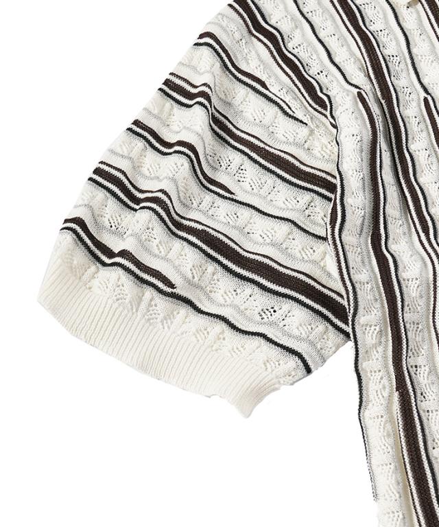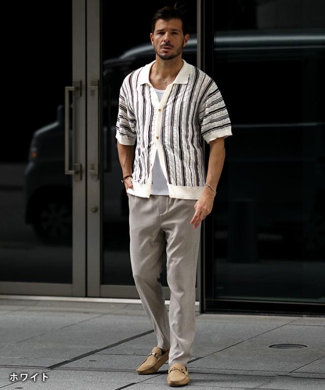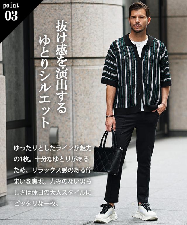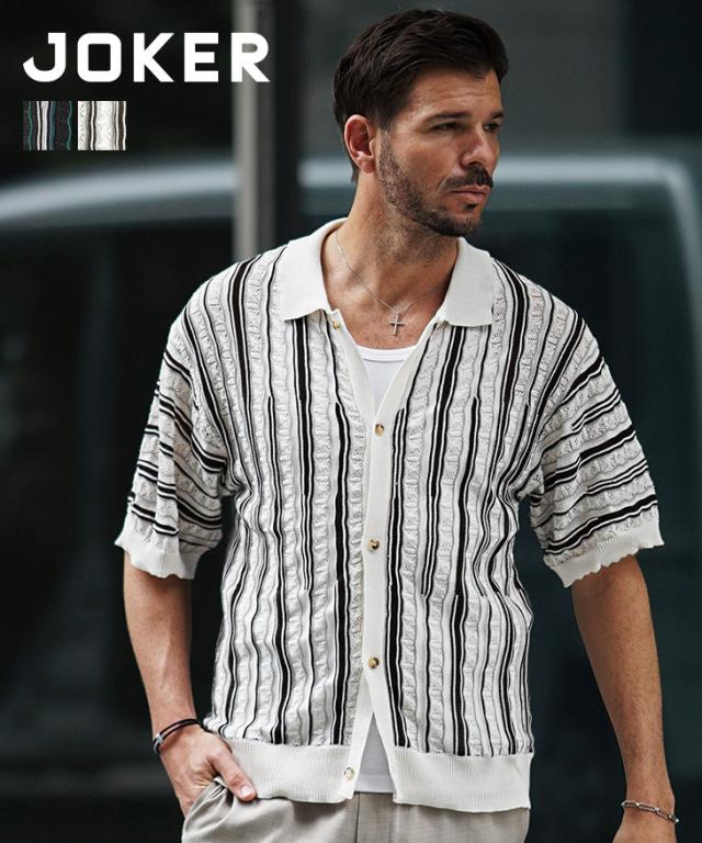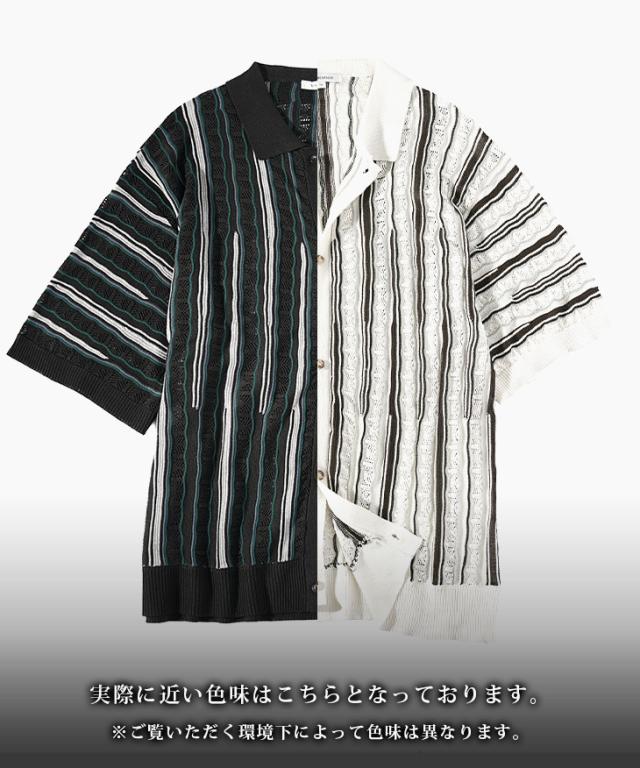 半袖シャツ メンズ ニットシャツ ストライプ シャツ メンズ 半袖 ニット サマーニット 春 夏 新作 シアーシャツ オラオラ系 お兄系 イケオジ メンズファッション ジャガード