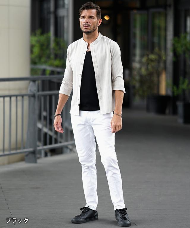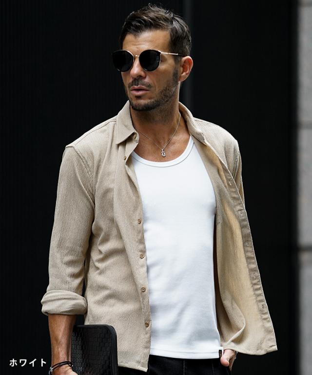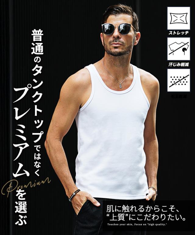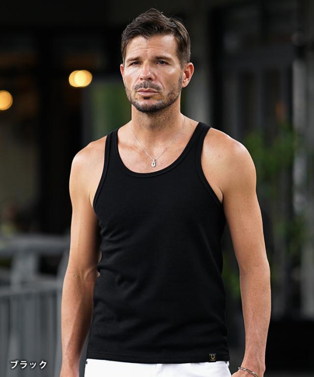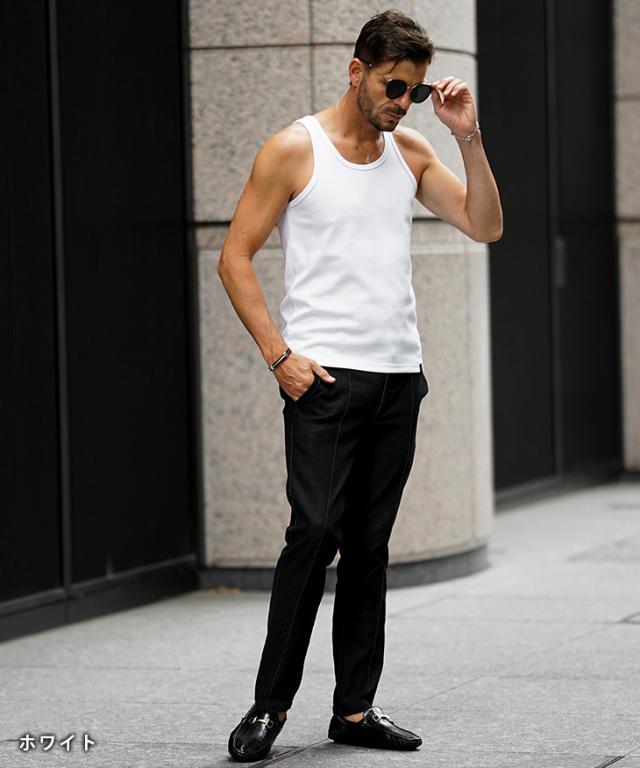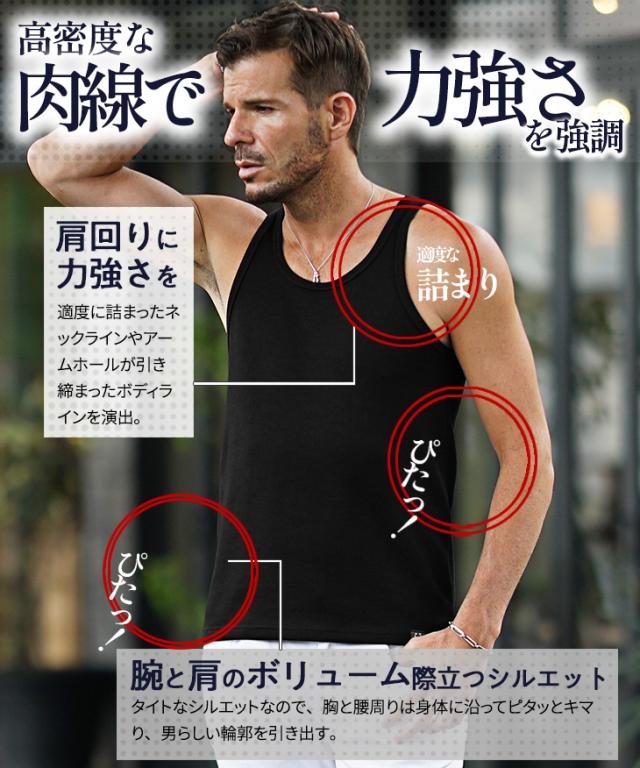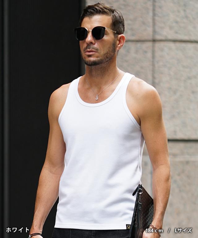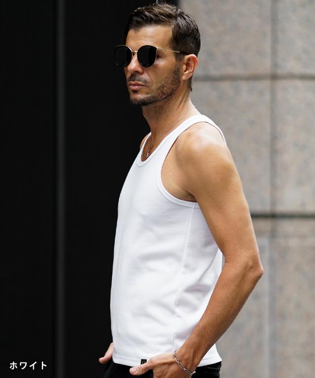 タンクトップ メンズ 細身 肉厚 透け感防止 カットソー 白 黒 ホワイト ブラック 春 夏 新作 インナー オラオラ系 お兄系 イケオジ メンズファッション