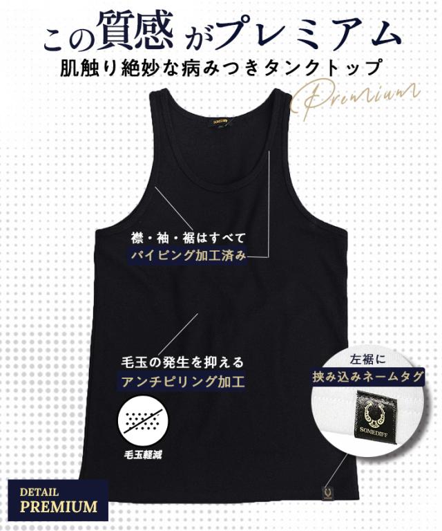 SOMEDIFF(サムディフ)『プレミアムタンクトップ』【プレミアムタンクトップ】■Design/デザイン夏を快適に過ごすなら、これがマスト。プレミアムカットソーシリーズから、待望のタンクトップが登場。重厚感のある生地と、体のラインにしっかりフィットする設計で、一般的なタンクトップとは一線を画す「男らしさ」を演出。1枚で着てもサマになり存在感は抜群ですが、インナーとしても優秀で、シャツやカーディガン、薄手のパーカーなどとの相性も抜群です。コーディネートの幅が広がり、夏の着こなしをよりスマートに。この一枚が、夏の定番になる。
