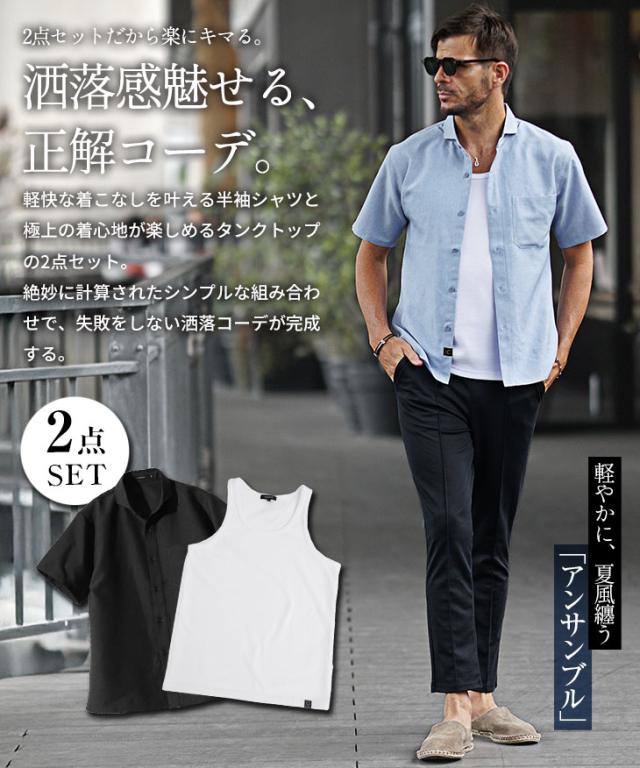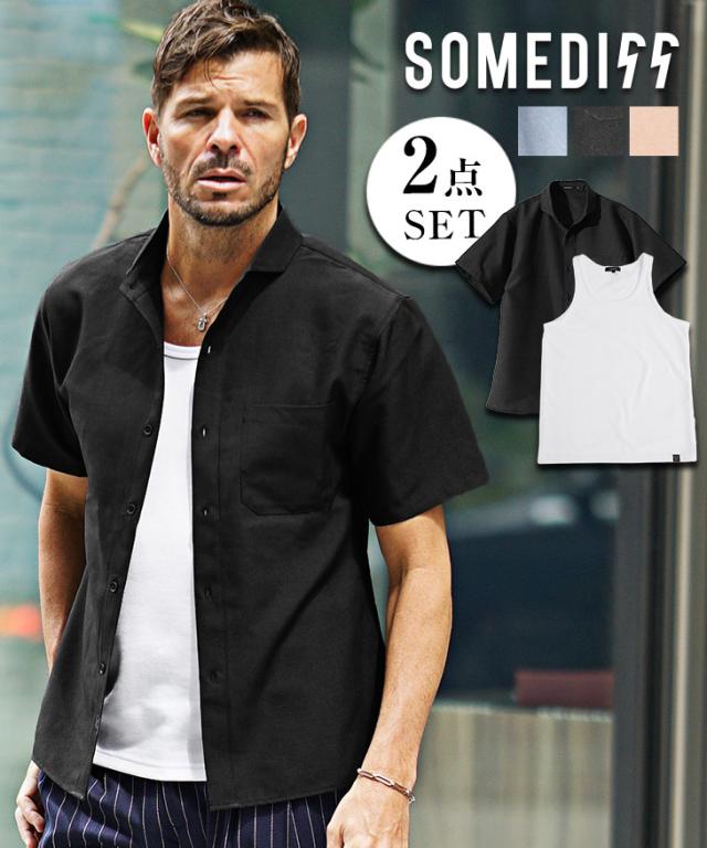 2点セット シャツ メンズ 半袖 アンサンブル タンクトップ 春 夏 新作 メンズファッション オラオラ系 お兄系 イケオジ リゾート サムディフ SOMEDIFF