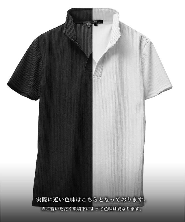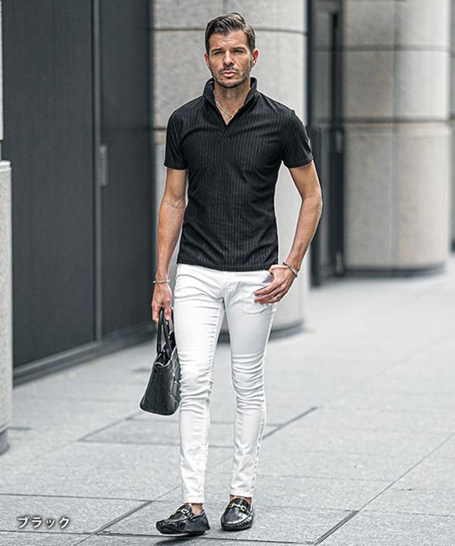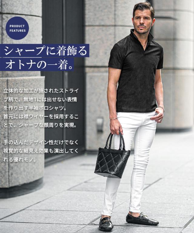 ポロシャツ メンズ 半袖 ストライプ イタリアンカラー 白 黒 ホワイト ブラック 春 夏 新作 メンズファッション オラオラ系 お兄系 イケオジ カットソー