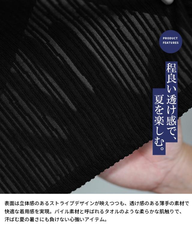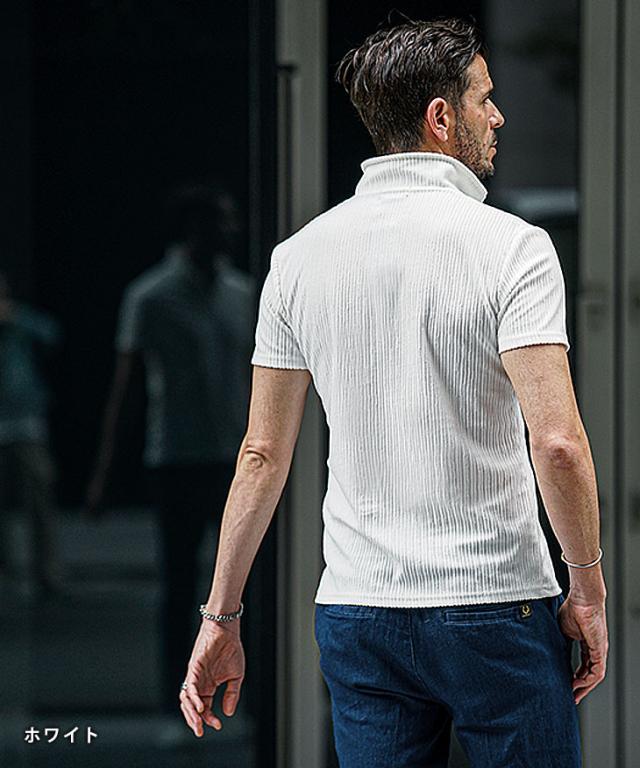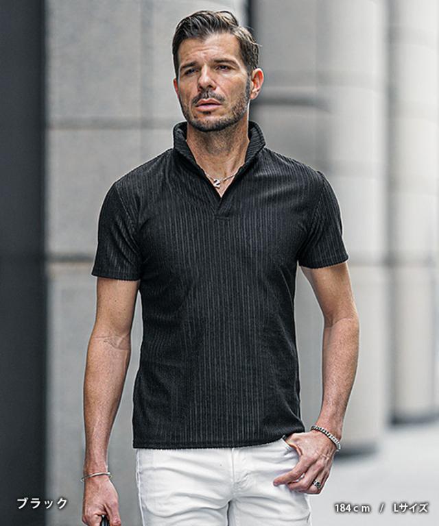 シアー感を纏うオトナポロ『パイルストライプ半袖ポロシャツ』【パイルストライプイタリアンカラー半袖ポロシャツ】■Design/デザイン春夏のスタイルを格上げする、究極の一枚が登場。パイルストライプの絶妙なテクスチャーが、シンプルなデザインに華を添え、イタリアンカラーのスキッパー襟が男らしさを引き立てる。ワイヤー入りでキリッと立つ襟は、さりげないアクセントとなり、どんなシーンでも洗練された印象を与えます。ブラック、ホワイト、どちらもその日の気分やスタイルに合わせて選べる。まさに、日常をクールに変えるアイテム。あなたの春夏コーデに、スタイリッシュなエッセンスを加える完璧なポロシャツ。