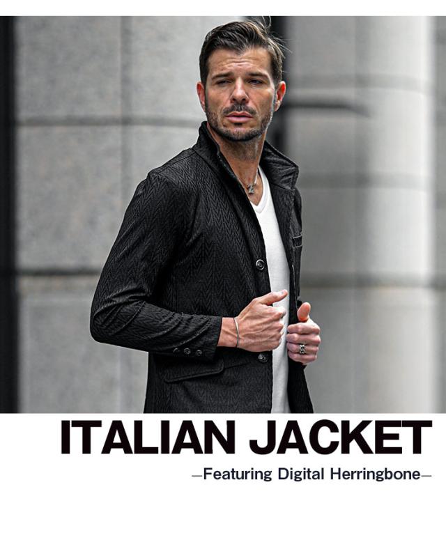 【デジタルヘリンボンイタリアンカラージャケット】■Design/デザイン