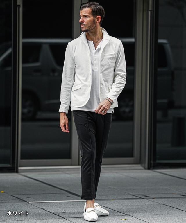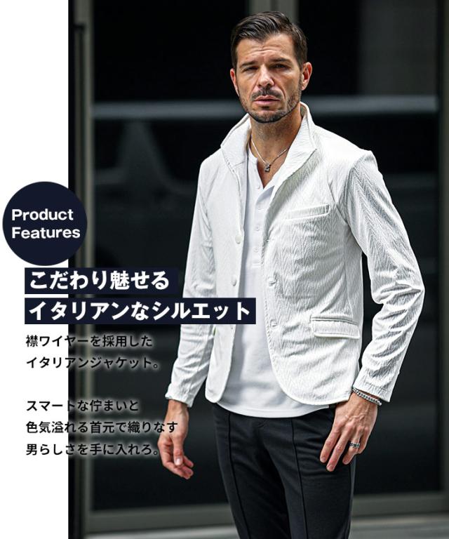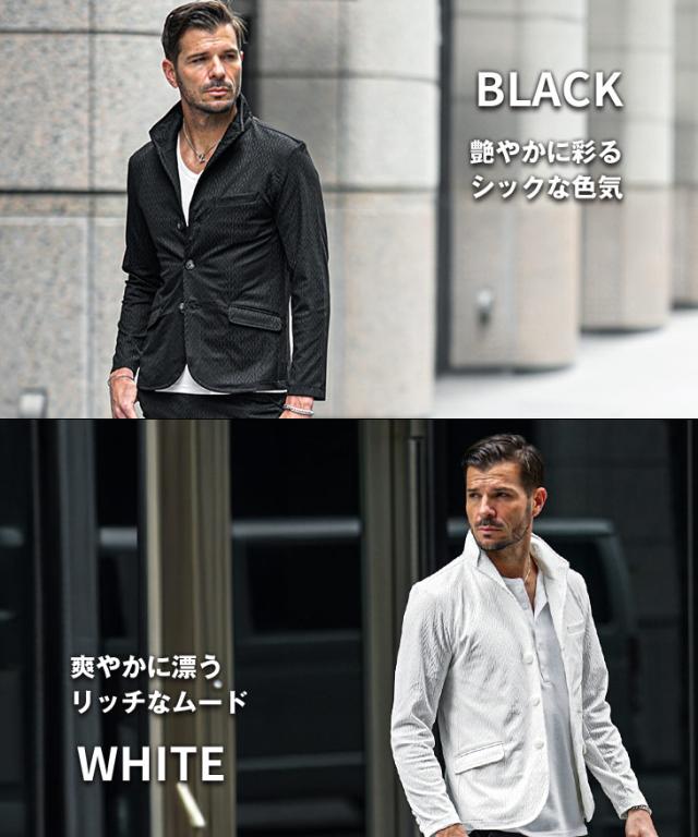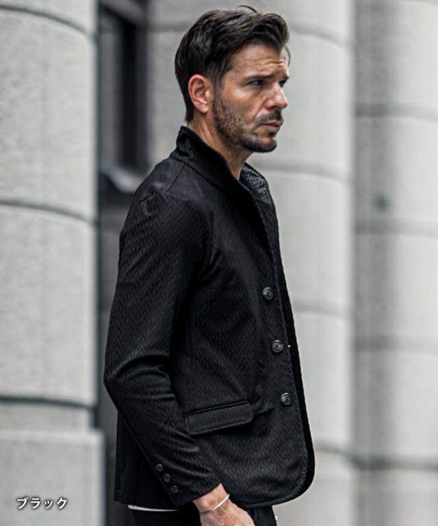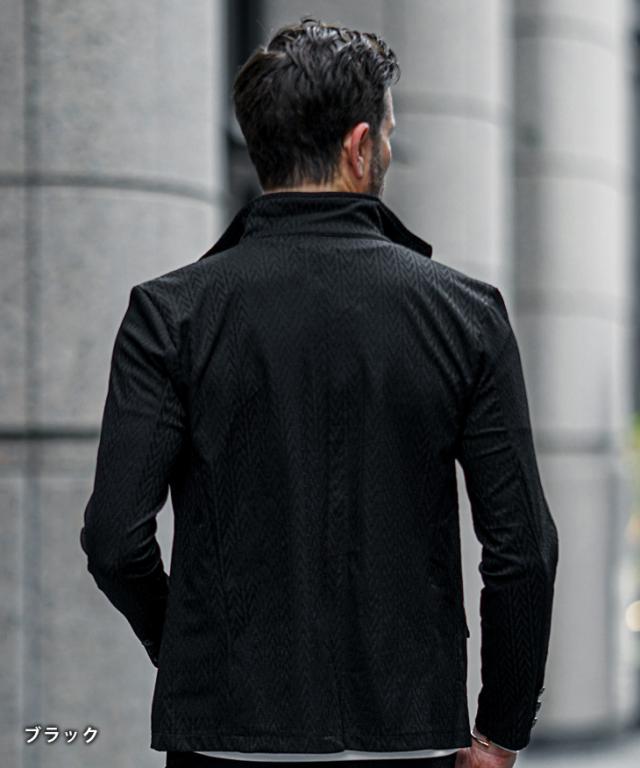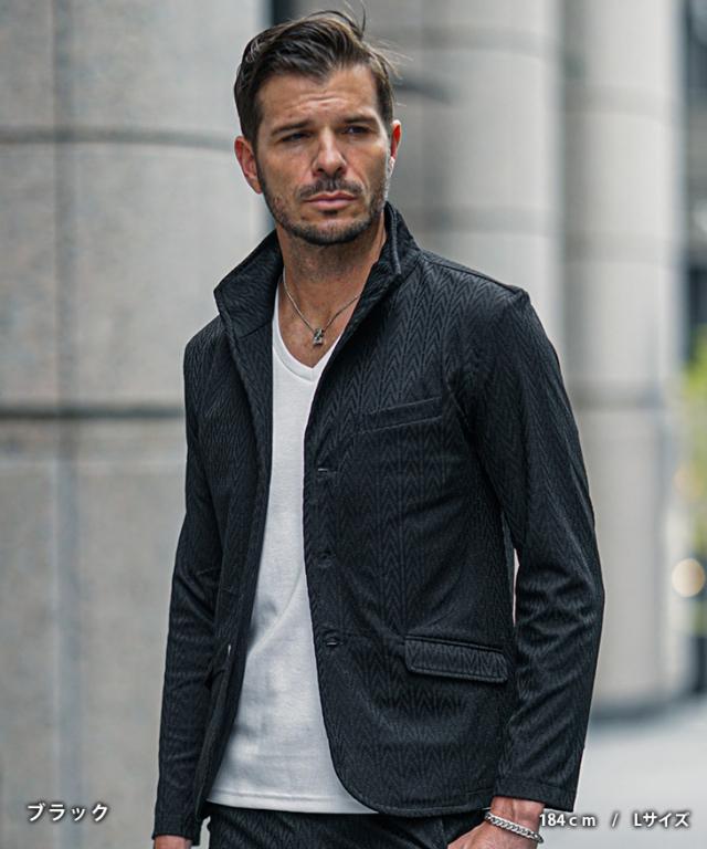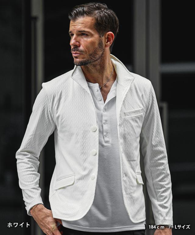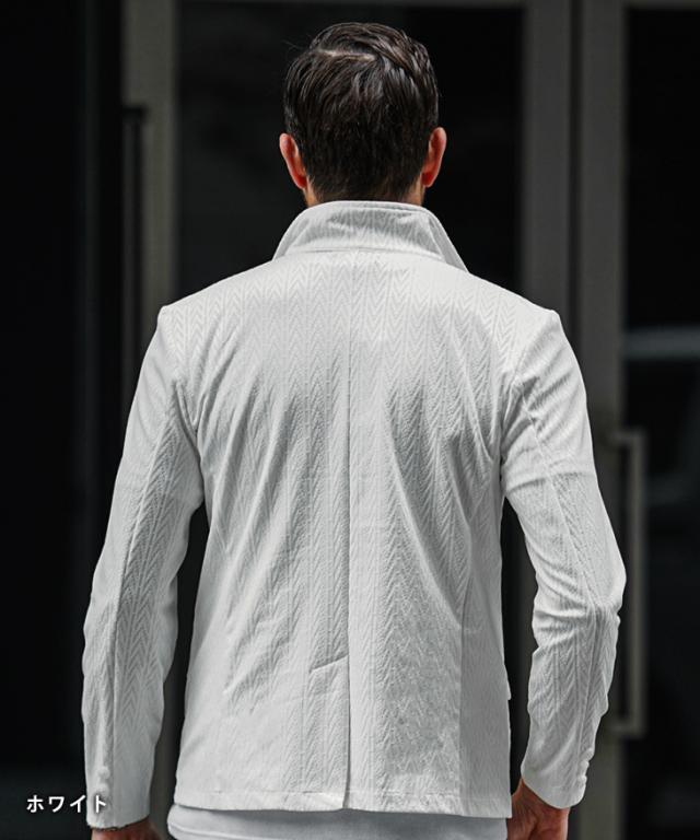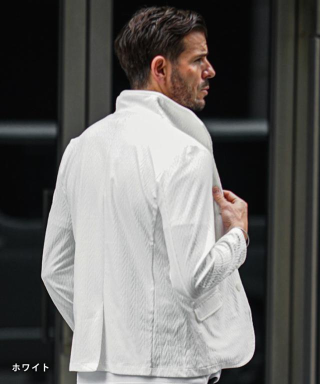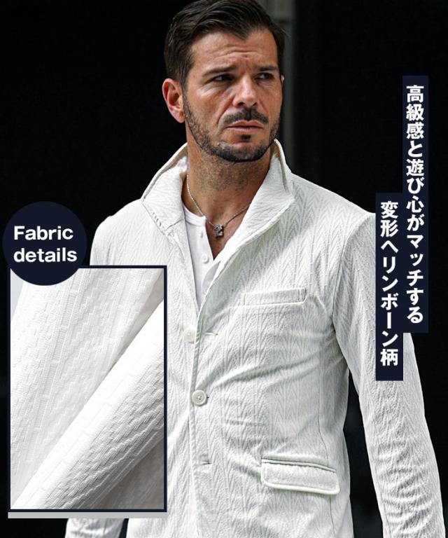 イタリアンジャケット メンズ 総柄 ヘリンボーン テーラード イタリアンカラー 白 黒 ホワイト ブラック オラオラ系 お兄系 イケオジ メンズファッション