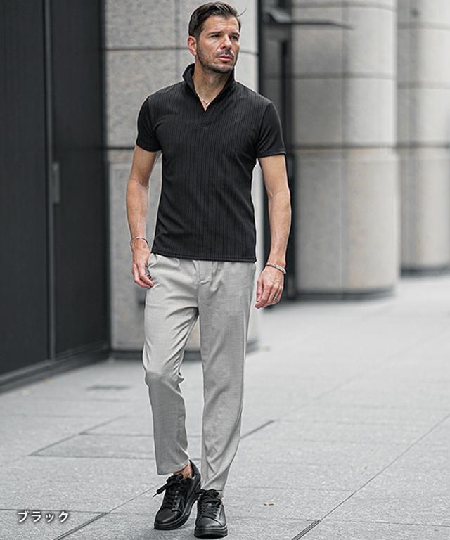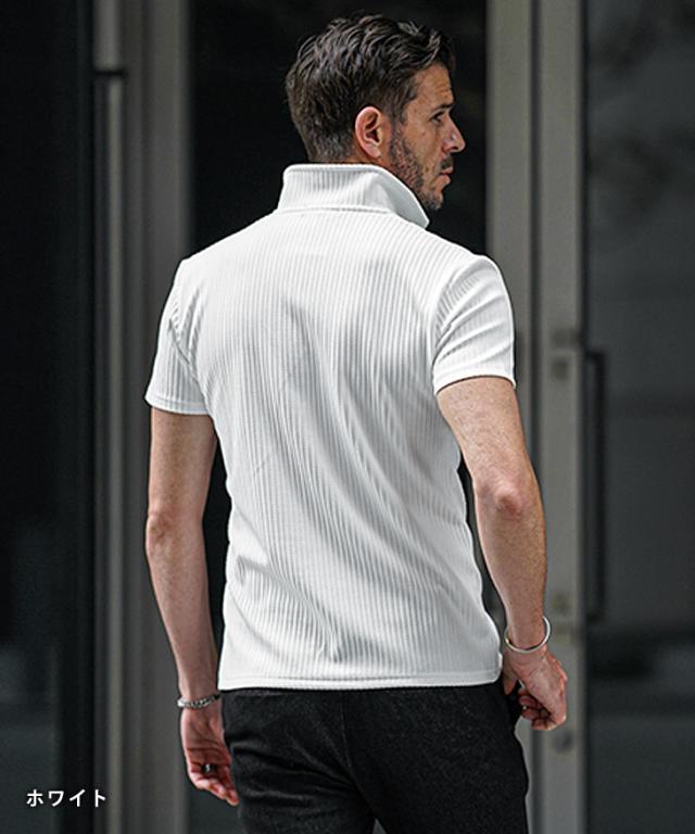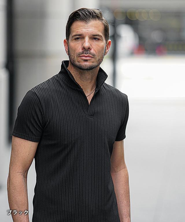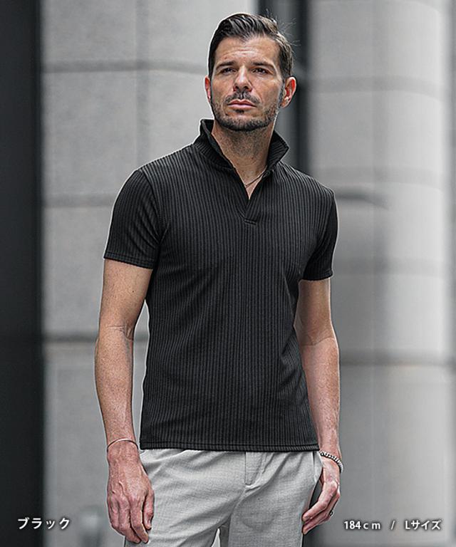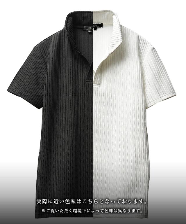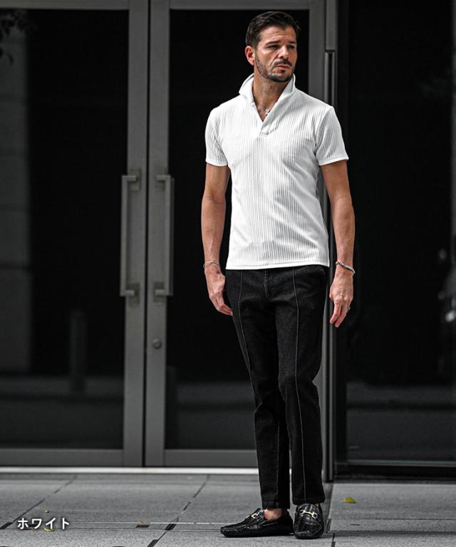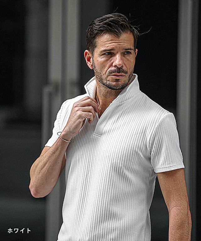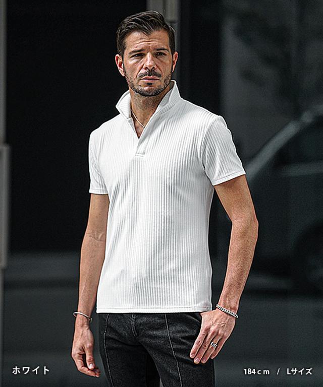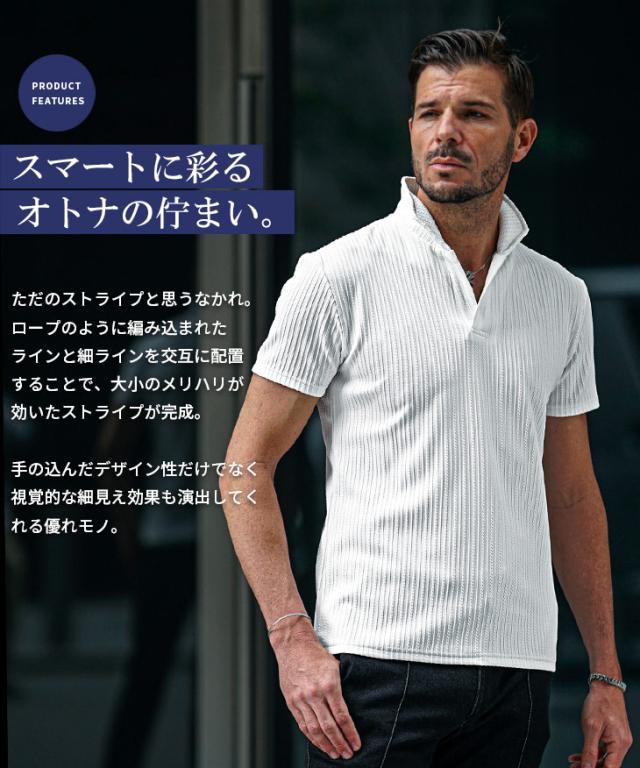 イタリアンカラー ポロシャツ メンズ 半袖 カットソー 白 黒 ホワイト ブラック 春 夏 新作 メンズファッション オラオラ系 お兄系 イケオジ デザイン ストライプ