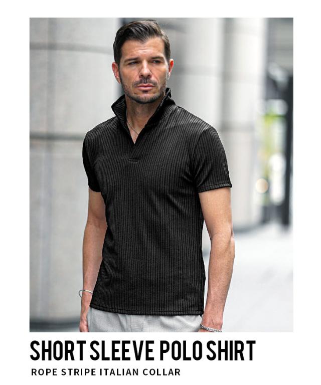 【ロープストライプイタリアンカラー半袖ポロシャツ】■Design/デザイン