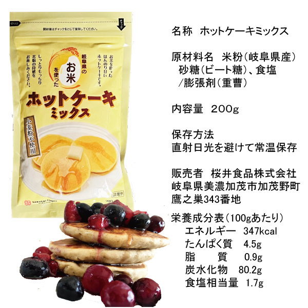 岐阜県産の米粉を使用したパンケーキ。送料 1通(最大4袋封入可能)198円〜4袋 = 198円〜8袋 = 396円〜12袋 = 594円13袋〜 = 792円(数量・地域によってはこちらの判断で宅配便に変更になる場合があります)