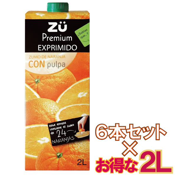 別送 送料無料 クール便 Zu スペイン産 果肉入り ストレート バレンシア オレンジジュース 2L×6本 コストコ 人気商品 7000円おまけ対象外