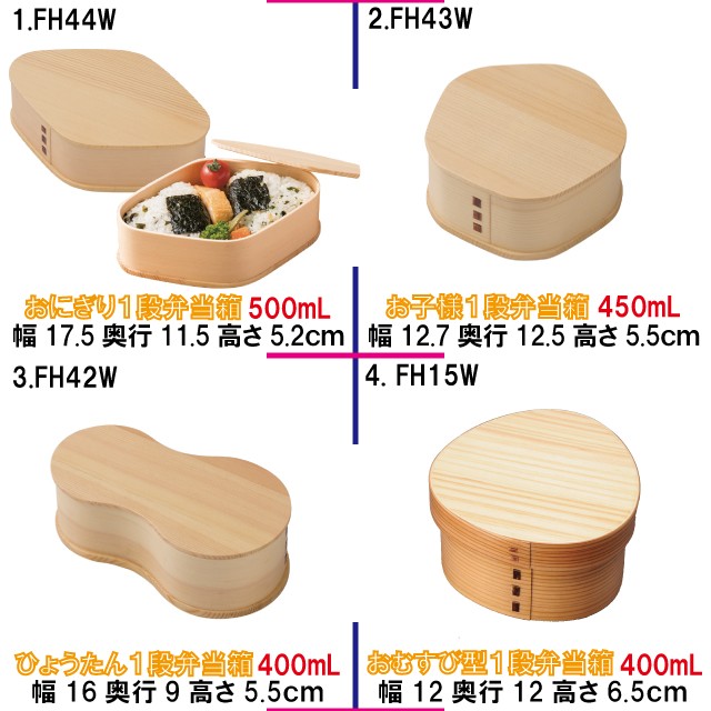 曲げわっぱの定番・豆型からお子様用のかわいいお花型、