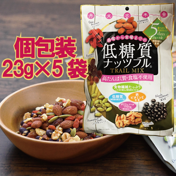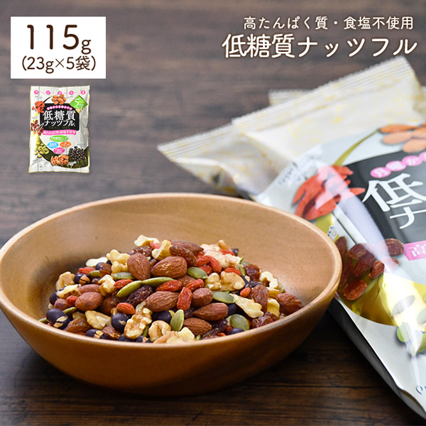 メール便cp 1通2袋まで198円 低糖質ナッツフル 115g23g5袋入り ミックス ナッツ くるみ アーモンド レーズン 黒大豆 お菓子 おつまみ 低糖NF