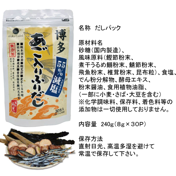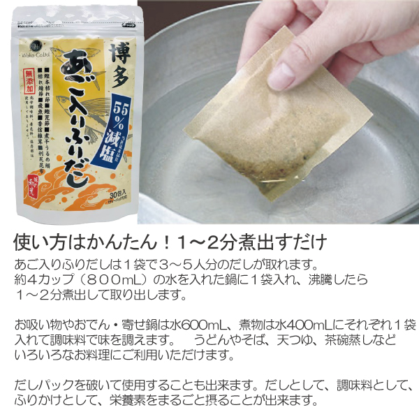 「メール便cp 1通(3袋まで)198円」 減塩 無添加 あご 入り 博多 ふりだし 30袋入 鰹節 あご 飛魚 鯖節 鰯節 椎茸 昆布 減飛だし