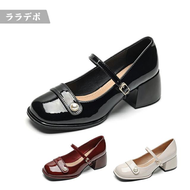 パンプス レディース シューズ 靴 痛くない 太いヒール ローヒール ヒール5cm 歩きやすい 大きいサイズ オフィス ビジネス 通勤 フォーマル 結婚式 卒業式 入学式 パーティー ブラック あんずいろ ベージュ ワインレッド かわいい おしゃれ きれいめ